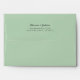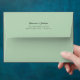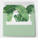 A modern wedding invitation envelope features illustrations of banana leaves.