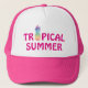 Tropical summer pineapple pink girl's trucker hat. Fun fashion accessory for beach party, sports and more. Custom cap with modern typography and rainbow colour pineapple logo. Cute Birthday gift idea for fruit lovers, sister, wife, girlfriend, sister, friend, wedding bride, vegetarian etc. Trendy headwear for women and girls.