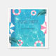 Tropical Summer Pool Party Napkins to complement your pool party. The design features a swimming pool with realistic, inviting water, tropical palm fronds, various pink and white floaties, and umbrellas. There is a matching party invite available. Splish splash, party on and have fun!