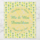 There is a yellow circle with white marbled patterns on it which contains customisable text so you can personalise this design.