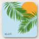 This coaster features an elegant minimalist design with a tropical sun behind palm leaves on an blue sky background. Personalise by adding your name in an elegant whimsically font.