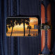 The sun setting in Tarpon Springs, Florida with a family playing in the background. The sun was especially vibrant that day with yellow, orange, red and grey swirling in the sky. The silhouetted palm trees on the beach really give the photo a tropical feel.