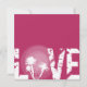 This tropical sunset themed design features a graphic mix of bright colours and bold palm tree silhouettes in summer shades of fuchsia, hot pink, magenta, purple, ochre yellow and sand over a glowing sun.