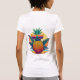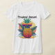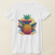 This vibrant T-shirt design features a stylised pineapple wearing a pair of sunglasses against the backdrop of a tropical sunset. The pineapple is detailed with a textured pattern, and the sunglasses reflect the vibrant colours of the sunset. Palm fronds frame the bottom sides of the image, enhancing its tropical theme.