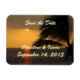 Customise your name and date on this Save the Date magnet showing a gorgeous view of a tropical sunset.