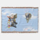 A quality printed throw has its advantages. This is a much finer weave throw than its loopier cousins, and though lighter, it is worth the investment for custom room accessorizing. The back is much prettier than the typical brown, and the fringe on the long sides very vivid, the selvage nicely done. Before photographing, I washed the throw in cold water, delicate, with a thicker woven throw the same size. On tumble dry low, this throw was dry in half the time as the other. This is a very practical quality if you use throws for furniture covers or to wrap up in frequently. The sleekness of the fabric makes it a great layer for accenting or protecting without the feeling of sitting on too much stuff. Perfect for napping or when you feel a light chill coming on. The color printing is beautiful and on this fabric, matched the design and color of my Photoshop image. This is an advantage for blending room fabrics and colors. The fringe on the short sides prints the colors from the design image and therefore varies from the side fringe. I streaked a white fractal line through the plaid pattern to give the illusion of weaving. This printed as crisp as an illusory thread, and put some white in the short side fringe, showing another advantage of print vs loomed- for artistic purposes, line lines, detail, and color integrity can be planned and preserved. My loomed throws have color limitations and more of a needlepoint texture. Print throws reproduce an exact image. The throw felt a little stiff straight out of the package, but this went away in the first delicate wash. Of course I searched the wash water for ink or bleeding and there was none.