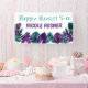 Tropical teal green and plum purple banner is a bold way to say happy Hawaii 5-0. Vibrant monstera leaves and ferns are colourful for a festive 50th birthday party. Tropical teal green and plum purple leaves are versatile for a variety of coastal themed celebrations.