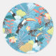Tropical Texture With Toucans and Hummingbirds Classic Round Sticker