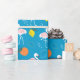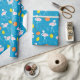 Tropical Theme Flamingo Fruits on Blue Background Wrapping Paper