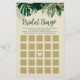 Tropical Foliage Trendy Greenery and Leaves Border Personalised Bridal Shower Bingo game cards. Perfect for your tropical themed wedding shower or party activities. In a bold colour palette of rich greens, emerald, and gold foil look. This design is perfect for a beach, destination, or summer wedding. With feelings of a tropical paradise, this vivid palm leaf design will compliment your beach or tropical wedding venue. In a dark green, teal, emerald, greenery, and gold colour scheme - Bridal Shower Bingo game cards.