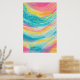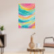 This vibrant abstract design captures the essence of a sun-drenched tropical paradise. Swirling waves of turquoise, pink, yellow, and green create a dynamic, layered composition reminiscent of colourful tide pools and shimmering ocean surfaces. Playful patterns of dots, zigzags, and organic shapes dance across the surface, evoking the diverse textures and life forms found in coral reefs. The warm, energetic colour palette brings to mind lazy summer days, exotic vacations, and the mesmerising beauty of nature’s most colourful ecosystems.