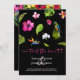 This beautiful tropical beach destination just married wedding announcement and reception invitation features the words, "we tied the knot" with elegant watercolor floral elements in pinks, yellows, blues, and white, a tropical parrot, and greenery on a black background and trendy pink hand lettered script. Be sure to include an RSVP with this announcement in order to receive your guests' response for those who do not have internet and cannot reply via your wedding website. Easy to customise with your own wedding reception information. This is perfect for the beach or tropical wedding reception or for the couple who eloped in a tropical wedding destination.