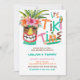 Tropical luau theme couples shower invitation features a hand painted tiki mask, pineapple, surfboard and parrot with "It's Tiki Time" typography. Perfect for a baby or wedding shower and beach, island and summer themes. Shown as a couples shower invitation but you can personalise it to show just one name depending on the type of shower you are having. Artwork by KL Stock