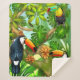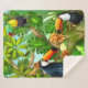 Keep cosy in cold weather with this comfy, cosy Sherpa blanket featuring the cheerful and original tropical toucan artwork of wildlife artist Carolyn McFann. A great gift idea for home, dorm or anywhere!