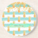 Turquoise Yellow Sandstone Coaster with Pineapple Pattern, faux gold glitter dots. Gives Beach Sea Vibes, perfect for beach house, outdoors, travel gifts. Use personalise this template to change text. More products with this design are in the collection below.
