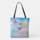 Pretty tote bag for hot summer days, featuring Tropical Blue & Pink Cocktail Abstract Sea design.