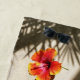 Feel the Tropical Vibes with this colourful Hibiscus blossom and shadows of palm fronds cast on the sand. Personalise this sandy beach towel with a Name.