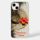 Feel the Tropical Vibes of this sun hat and bright orange hibiscus blossom in the shadows of a palm tree cast in the sand. Easily personalise this fun, feminine, chic case with your name. Carry a bit of the dream of a sandy beach vacation with you everywhere you go.