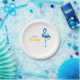 Tropical Watercolor Blue Flamingo Gold Paper Plate