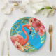Tropical Watercolor Flamingos & Hibiscus Paper Plate