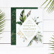 Tropical Watercolor Foliage Gold Frame Wedding Invitation