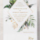 Tropical Watercolor Foliage Gold Wedding All In One Invitation