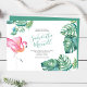 This summer invitation features your names set in a stylish handwritten script typography with event details in a classic charcoal grey serif font on a crisp white background with a boarder of my original watercolor pink flamingo and monstera palm leaves in shades of blues, greens and turquoise. The invite card reverses to a complimentary tropical turquoise green colour. A botanical yet elegant choice for casual beach, Florida Keys, Caribbean and coastal weddings. To see more cute wedding invitations by Victoria Grigaliunas visit DoTellABelle on Zazzle.