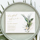 This wedding bridal shower invitation card features watercolor green tropical foliage with faux gold leaf accents and a tropical pattern on the back. It's perfect for a beach or destination wedding.