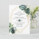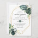 Tropical Watercolor Leaves Gold Frame Wedding Invitation