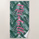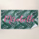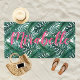 Tropical Watercolor Palm Leaves Custom Pink Name Beach Towel