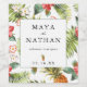 Personalised wine labels are perfect for adding a unique custom touch to your table wine, wedding favours or welcome gifts. Classy elegant design for spring or summer weddings features watercolor tropical pattern of red flower, palm leaf and pineapple. your names, wedding date and wine varietal or custom message in elegant lettering. Designed to coordinate with our Tropical Pattern suite.