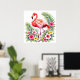 Tropical Watercolor Pink Flamingo Floral Hawaiian Poster