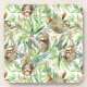 Tropical Watercolor Sloth Pattern Coaster