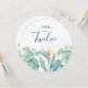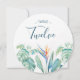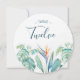 Chic tropical wedding table numbers features a bottom border of watercolor florals with lush botanical foliage and greenery in a unique round card. Personalise with your table number in modern hand lettered script and traditional sans serif lettering. Perfect for garden, summer, destination or beach weddings. To see more designs like this visit www.zazzle.com/vginvites