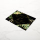 This tropical modern and elegant gold foil elopement postcard is an easy way of letting everyone know you eloped. "We Tied the Knot" along with the couple's name and elopement location and date are featured on the front in the foil colour of your choice. The text is highlighted by a foiled frame. Tropical leaves and ferns on a black background peak out from behind the frame. Gold foil splatters add a bit of sophisticated whimsy to the design. The back of the postcard has the wedding reception celebration details in black.