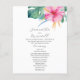 These tropical wedding ceremony programs feature a vibrant pink hibiscus flower with monstera palm leaves. Use the template fields to add your order of service. The paper sheet reverses to a matching fuchsia pink colour. A botanical choice for garden and destination weddings. To see more unique designs like this visit Do Tell A Belle on Zazzle at www.zazzle.com/dotellabelle