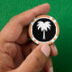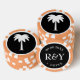 Tropical wedding poker chips for drinks and more. Custom colour token for drinks or other ideas. Add bride and groom initials plus date of marriage. Personalised party poker chips for wedding guests. Great for themed venue at Las Vegas destination marriage. Can also be used as keepsake or as golf ball marker. Change quantity to get the cheap bulk price. Double sided print with hearts. Customisable orange edge colour. Palm tree logo.