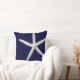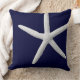 Tropical White Starfish on Navy Blue Beach Cushion