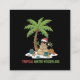 Escape the cold and celebrate a "Tropical Winter Wonderland" with this fun and festive design! It features a cool snowman made of sand, complete with a Santa hat, sunglasses, and a shell necklace. He's chilling next to a palm tree decorated with colorful Christmas lights, surrounded by gifts and starfish. This humorous and unique design is perfect for anyone who dreams of a beach Christmas, lives in a warm climate, or is heading on a tropical holiday vacation. Add a touch of sunshine to your festive season with products featuring this unique island-style celebration