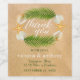 The design features a tropical wreath of palm leaves, seashells & starfish on a sandy background with color coordinated wording.