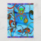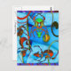 The weird semi-skeletal animals of this unique original abstract composition cavort amid swirls of pink and black, floating above the vived blues of the background. With a summery, tropical water/surf feel, this bright cheerful print is ideal for kids and adults alike.