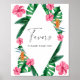 Tropical Palms Watercolor Bridal shower invitation. Design features an watercolor elegant bouquet of classic beach watercolor greenery and flowers, including blush pink hibiscus, orange and blue bird of paradise, green greenery and dark green palm leaf.