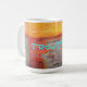 shows fly fisherman tying a fly on and sun setting on a western river from original mixed media painting ! also "trout bum" slogan