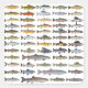 row 4: Lake Whitefish, Tiger Trout (hybrid trout), Golden Trout, Blunt-snouted lenok (trout), Powan (Whitefish)