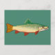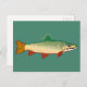 A postcard for a fishing lover or fisherman ! An image of a trout fish illustration freshwater river fish for any fishing hobbyists or fish lovers. This cool illustration is set against a customisable green background.