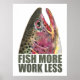 - - - - - - - - - - - - - - - - - - - - - - - - - - - - - - - - - - - - - - - - - - - - - - - - - - - - - - - - - FISH MORE, WORK LESS. Giant rainbow trout fish head with saying. For the fishing obsessed fisherman, fisherwoman who understands time on the water is better than time at work! This trout art is from an original watercolor painting by Mr. Trout Whiskers, Doug Shultz. Great gift for your favourite fisherman or icthyologist. Shop TroutWhiskers for other unique fishing gear. - - - - - - - - - - - - - - - - - - - - - - - - - - - - - - - - - - - - - - - - - - - - - - - - - - - - - - - - - Shop the TroutWhiskers store online for other unique fishing accessories custom printed with art, designs, graphics, pictures and sayings on: … short sleeve, raglan and long sleeve tee shirts; casual, fitted, spaghetti, organic and ringer t-shirts; regular and hooded sweatshirts; hoodies; creepers, … large and small tote bags for grocery shopping, books, kids toys, beach stuff or use to store or carry fishing tackle, lures, flies, accessories on a fishing adventure … commuter, messenger and courier bags - perfect as a workday bag commuter, overnight attaché, with add-on pockets and straps, or use as a travel bag for storing or carrying books, fly boxes, rods, reels and miscellaneous equipment for a fishing trip or other travel … square and round mini, large and big huge buttons for clothing, caps, hats … square, round and flexible magnets for refrigerator, file cabinet, boats, tackle boxes … neckties to wear anywhere … bumper stickers for cars, trucks, boats … greeting cards, note cards, postcards and postage stamps … stationery, letterheads with matching envelopes, business cards and labels for company, personal or business use … 3 ring binders for pictures and photographs or fly tying recipes … notepads, memo pads and notebooks for keeping a journal, diary, log, record or use for drawings, sketches, illustrations … dishwasher and microwave safe ceramic and glass mugs for coffee, espresso, tea and more … beer steins for display on mantle or shelf or for party and celebrating … stainless steel travel and commuter mugs … recycled aluminium and 100% BPA free Liberty Bottleworks water bottles … porcelain tea pots, pitchers and jars for candy, snacks and treats … ceramic tile, sandstone and cork coasters for your house or office … tshirts and cermaic food and water bowls for your cat, dog or other pets … wood trinket, keepsake and gift boxes to hold jewellery, coins, collectibles and are great for fly tying materials … jigsaw puzzles, with and without a storage tin, and display plaques … MoJo brand dinner and cocktail party napkins, placemats, towels and pillows … art, posters and prints on regular or archival paper or canvas, with or without frames, for your home, company, store or shop … gel mousepads and cloth mouse pads for home, school, office … cases, sleeves and portable Doodle speakers for a cell phone, ipad, ipod, iphone or laptop computer and other electronic devices … folio for smartphones, journals, notebooks or planners … ornaments for Christmas, Hanukkah and other holidays for your tree, home décor, car hang tags, the uses are endless. Some designs are serious art, some are humourous and funny - all are one of a kind. Custom fishing gifts for everyone - men, women, boys, girls, kids, children, baby, infants, teens, brother, sister, dad, father, mum, mother, grandpa, granddad, grandfather, grandma, grandmother and friends, too! - - - - - - - - - - - - - - - - - - - - - - - - - - - - - - - - - - - - - - - - - - - - - - - - - - - - - - - - - Items in the store come in many different colours including white, black, grey, grey, brown, tan, red, orange, yellow, green, blue, purple, pink and lots of shades in-between. All items can be customised with your own text or personalised with a name - just click on the “Customise It” button. - - - - - - - - - - - - - - - - - - - - - - - - - - - - - - - - - - - - - - - - - - - - - - - - - - - - - - - - -