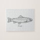 A simple puzzle with a trout illustration and text message below for an anniversary gift to a fisherman, a fishing guide, a lover of fish, etc.