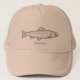 A cap with a trout illustration in line art and text message below for an anniversary gift to a fisherman, a fishing guide, a lover of fish, etc.