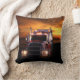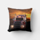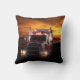 Truck driving mans pillow, big truck, semi truck, big rig, 18 wheeler with a dramatic rising or setting sun in the background