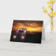 A special day for the truck driver Father or Dad. Big rig 18 wheeler drives through the sunset or sunrise in a card for all the truck driving fathers.